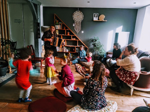 - de nouveaux formats de spectacles pour d’autres publics (handicap mental, personnes âgées) : lecture avec livre grand format, kamishibaï, balade contée (déjà testée et approuvée) ;