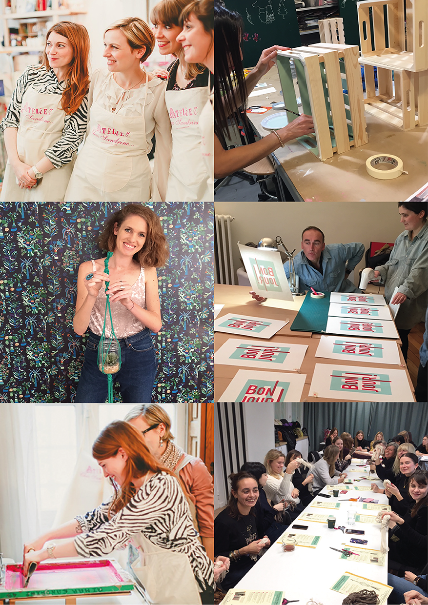 Chez Sandrine… propose aussi, en partenariat avec l’Etablisienne (Paris 12), des ateliers DIY d’initiation à la sérigraphie et au macramé.