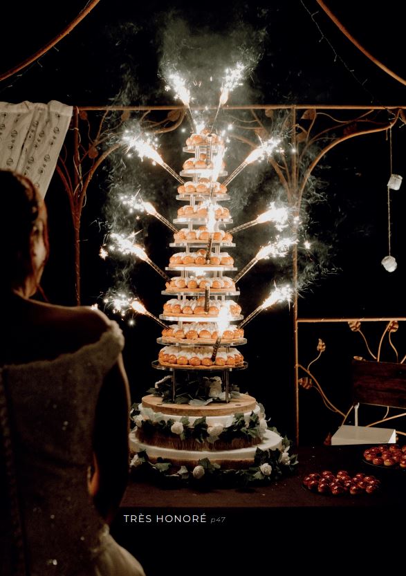C’est cette histoire qui prend vie avec “Le train de Noël au champagne”, une bûche résolument gourmande : sur un biscuit aux amandes, un confit de framboises et de Champagne rosé enrobé d’une ravissante mousse à la framboise.