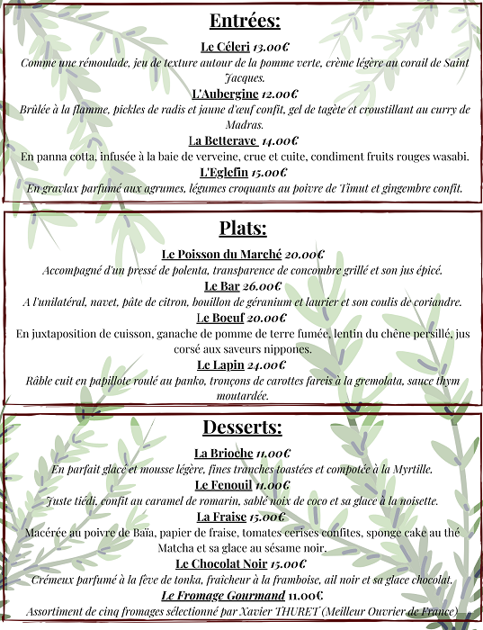 Après une longue évolution au sein d’établissements traditionnels, gastronomiques et bistronomiques, Gwen et Cindy sont revenus à la tête du Romarin pour le plus grand bonheur de leurs clients.