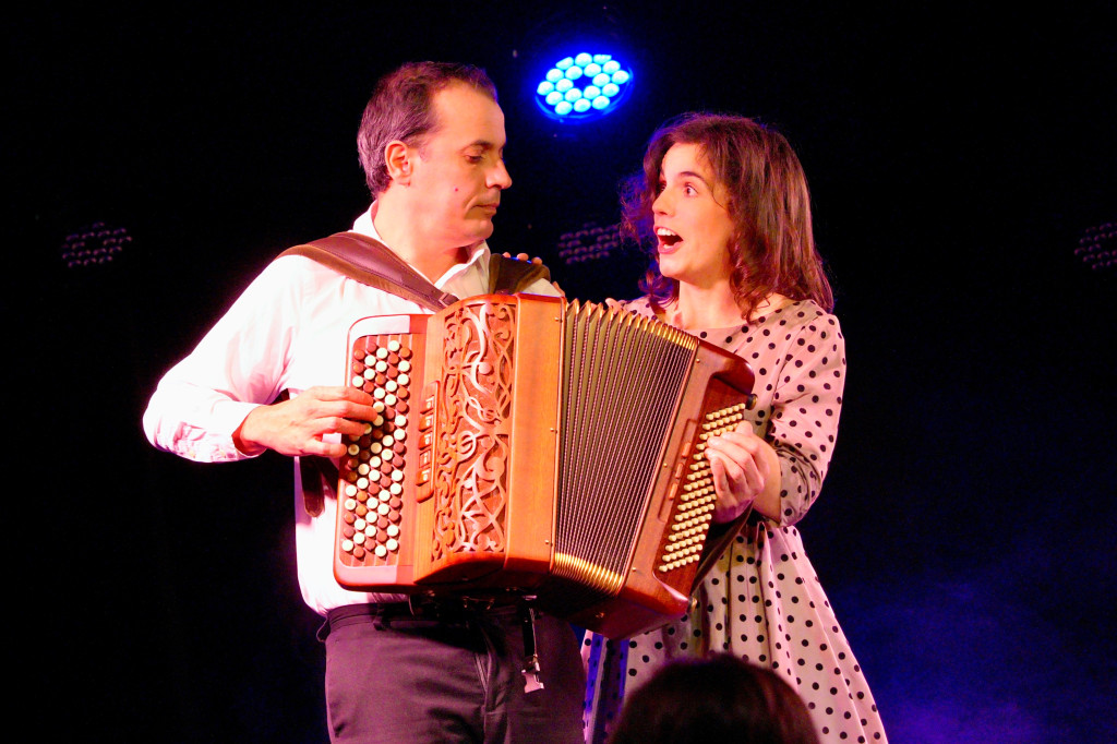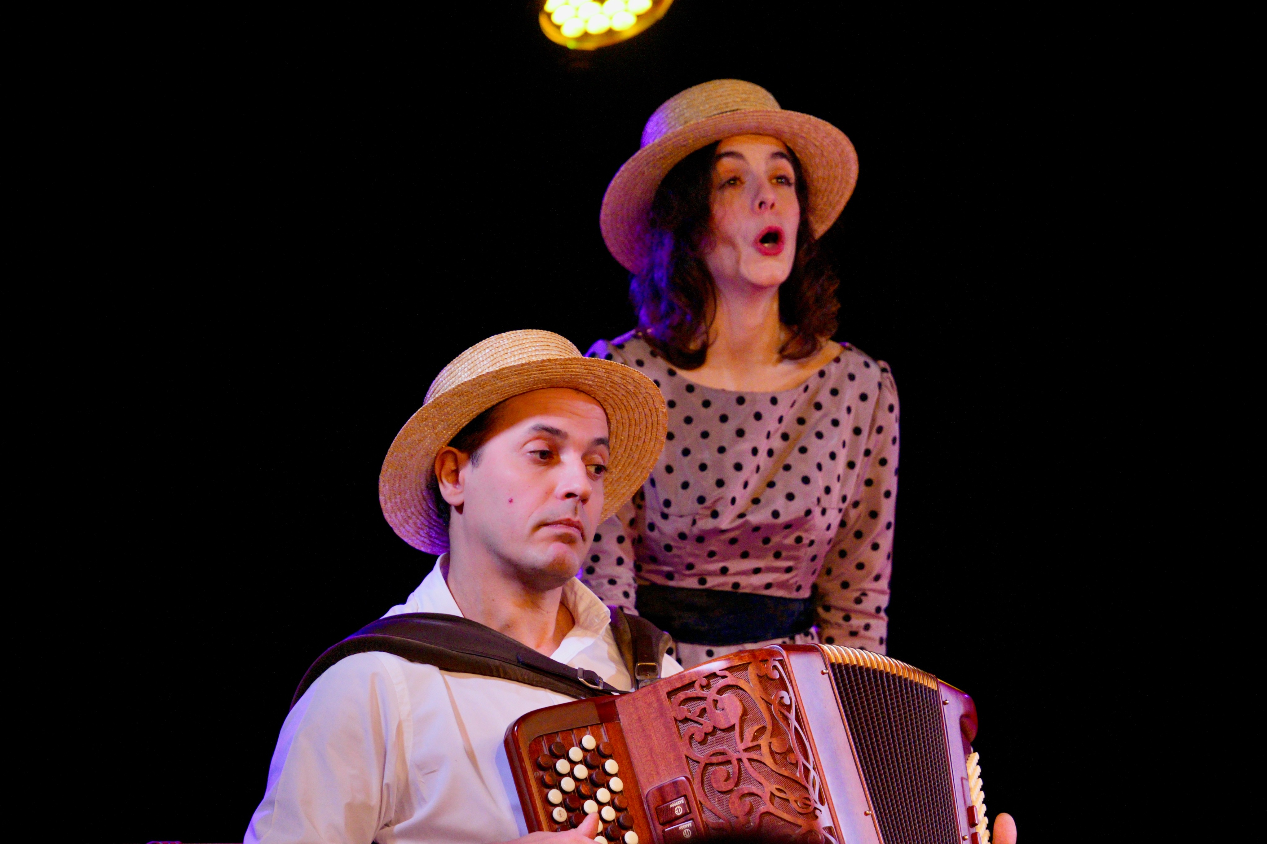 La représentation est ponctuée par les jeux de scène et interactions entre la chanteuse et l’accordéoniste tels que les débuts d’Aristide Bruant au Chat Noir, de Claude Nougaro Au Lapin Agile, de Georges Brassens Chez Patachou ou de Jacques Brel Aux Trois Baudets ainsi que les cuites de Charles Aznavour à la Maison Rose, la rencontre entre Piaf et Montand au Moulin Rouge, les déjeuners de Dalida au Moulin de la Galette…