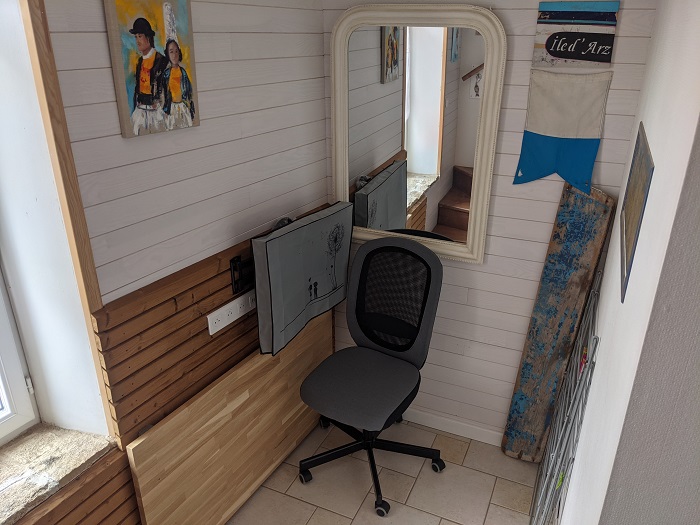 Quand nous parlons de travaux entièrement réalisés par nos soins c’est vraiment du sol au plafond, la toiture, les fenêtres la plomberie, l’électricité, la peinture, l’escalier … ??Il n’y a que les murs que nous n’avons pas touchés car ils existaient déjà ! Nous y avons passé tous nos week-ends, et nos vacances mais cela en valait la peine.