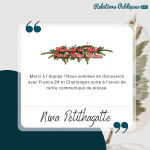Tout d’abord, je souhaite mettre en avant l’écoute, la disponibilité -même à distance- et la réactivité de l’équipe d’Edissio qui a su monter un dossier de presse adapté et personnalisé. Leur professionnalisme a permis un résultat optimal.